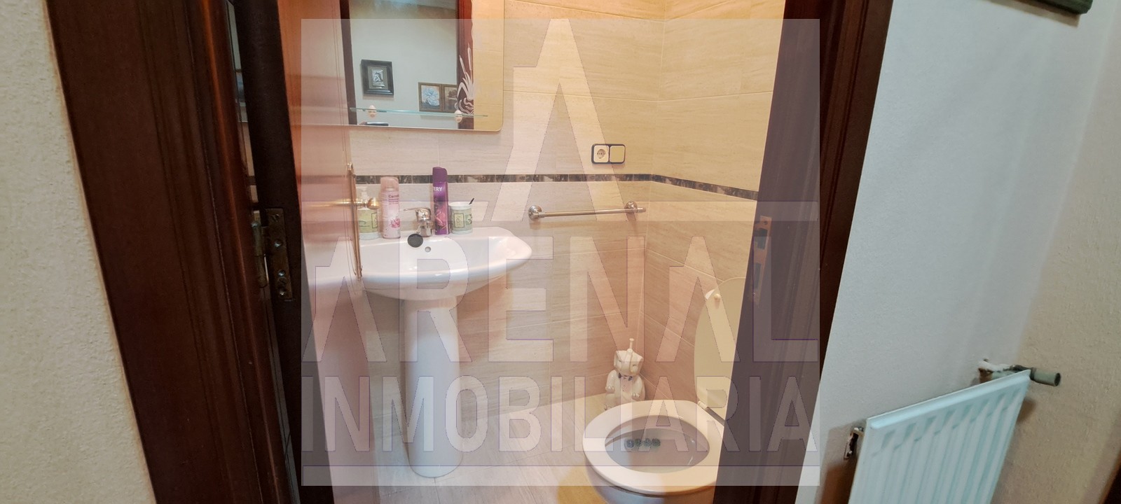 La propiedad consta de tres dormitorios, un baño y un aseo, así como una cocina independiente con zona de lavandería/tendal y un luminoso salón comedor. Destacan los armarios empotrados que ofrecen soluciones adicionales de almacenamiento. El piso se vende completamente amueblado (excepto el dormitorio de matrimonio) y cuenta con calefacción central de gasoil.